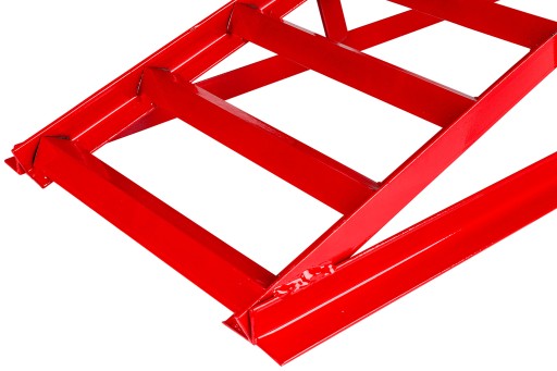 Blacha stalowa z gęsto rozstawionymi rozpórkami i klinami zapewnia wyjątkową stabilność i wytrzymałość ramp.