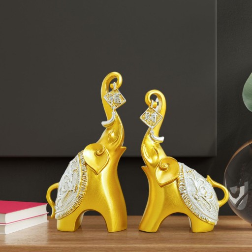 Para figurki słonia rzeźba dekoracja stołu do salonu śliczny złoty