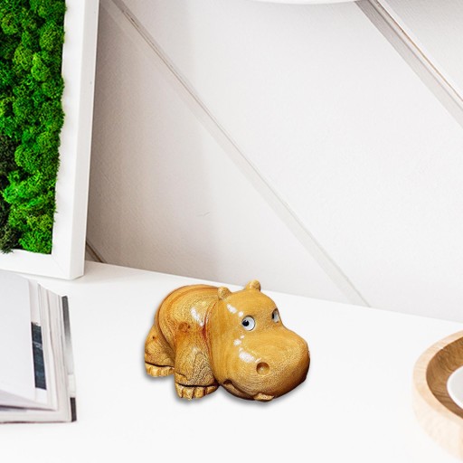 [Rzeźba zwierząt]: Ozdobna figurka z drewnianym posągiem hipopotama z realistycznymi szczegółami, a spód jest stabilny, ma wyjątkowe grawerowanie i jest trwały.