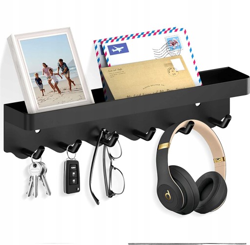 - Wieszak na klucze posiada 6 haczyków oraz małą górną półkę,