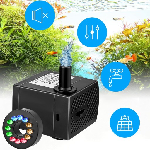💦12 diod LED: Ta mini pompa wodna z diodą LED dodaje do tradycyjnej diody LED 12 diod LED w czterech kolorach (żółty, zielony, czerwony, niebieski), wnosząc do pomieszczenia wspaniały kolor i atmosferę. Jest nie tylko praktyczny, ale zapewnia piękny efekt i idealnie nadaje się do dekoracji domu z małym i średnim akwarium.