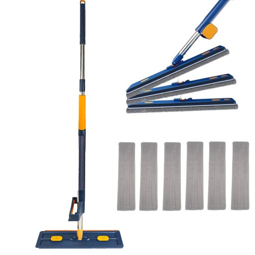 БОЛЬШАЯ ПЛОСКАЯ ВРАЩАЮЩАЯСЯ ТЕЛЕСКОПИЧЕСКАЯ НАПОЛЬНАЯ ШВАБРА С 6 ПОСАДКАМИ ИЗ МИКРОФИБРЫ