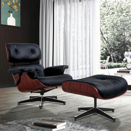 Fotel Eames Lounge Chair, czarny, naturalna skóra bydlęca ciemny palisander