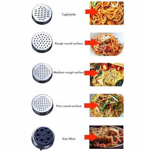 2. 5 foremek do makaronu: ta ręczna prasa do makaronu jest wyposażona w 5 głowic formujących, które doskonale nadają się do robienia makaronu w kilka sekund.