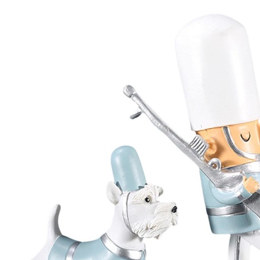 Vintage Dziadek do orzechów Lalka Żołnierz i pies Biurko Blat Dekoracja Prezent Biały