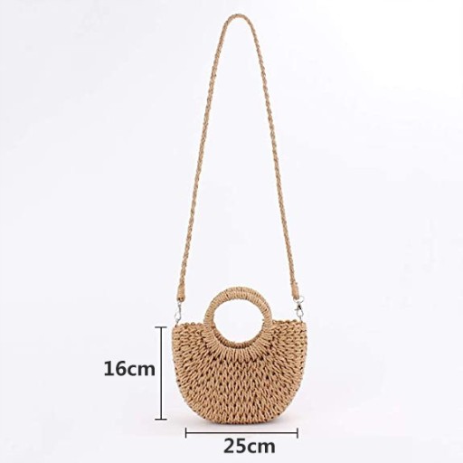 Rozmiar: 25x16cm (Uwaga: Pls uprzejmie pozwalają Różnica wielkości i niewielka różnica kolorów) Materiał: 1OO% Handmade Rattan Torby plażowe dla kobiet, unikalny fashional półokrągły styl projektowania z Drawstring, niech będzie bardziej atrakcyjne & uroczy wśród ludzi. Okrągły uchwyt z tkanym słomianym paskiem na ramię, może być noszony ręcznie lub na ramieniu. Jeśli plecak czuć trochę wspólnego. Następnie ten słomiany worek musi być bardzo odpowiedni dla Ciebie Nie tylko ma cechy i moda, ale także bardzo łatwo dopasować.
