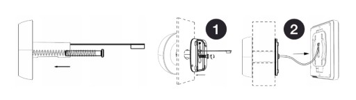 - Zamontuj ramkę na drzwiach. Dokręć śrubę w celu stabilizacji wizjera i metalowej ramki. Wepnij złącze sygnałowe do gniazda w wyświetlaczu oraz nasuń wyświetlacz na ramkę na drzwiach.