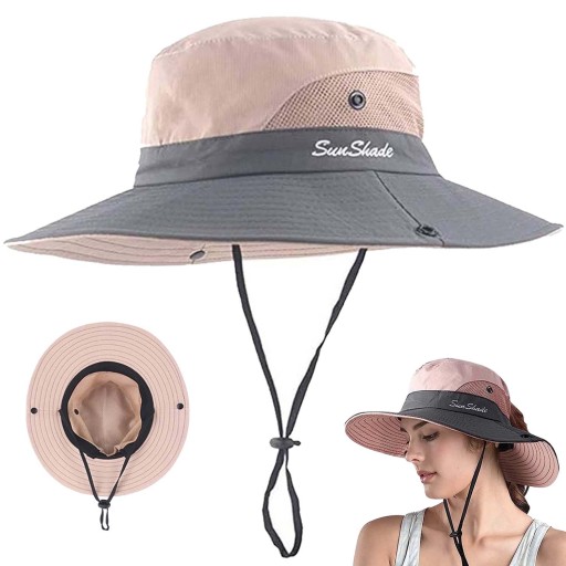 KAPELUSZ DAMSKI PRZECIWSŁONECZNY OCHRONA UV, WODOODPORNY, SKŁADANY RÓŻOWY