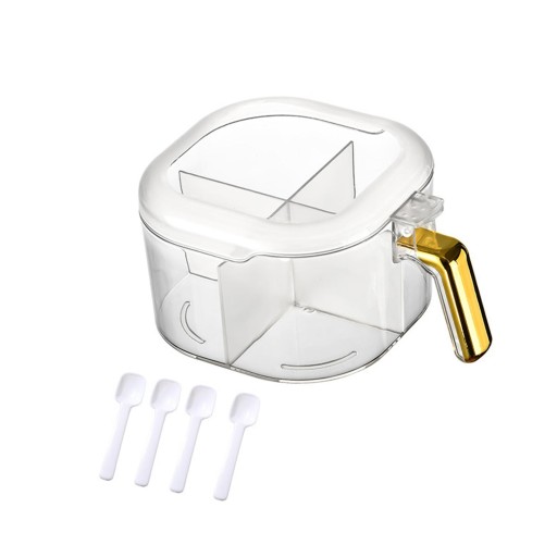 Materiał: pojemnik na przyprawy wykonany jest z wysokiej jakości materiału PETG, przezroczystego, trwałego.