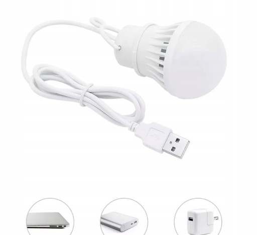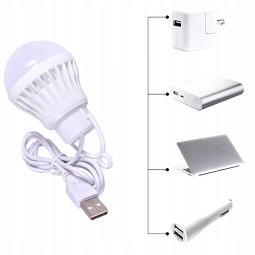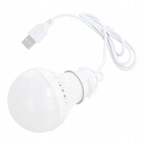 Dzięki wbudowanemu złączu USB-A żarówkę można podłączyć do urządzenia posiadającego port USB-A, np. laptopa, komputera, power banka, ładowarki sieciowej, ładowarki samochodowej itp. Posiada przewód o długości 1 metra oraz haczyk pozwalający zawiesić żarówkę. Idealnie sprawdzi się pod namiotem, podczas nocnego wędkowania, nocnego czytania czy podczas awarii prądu.