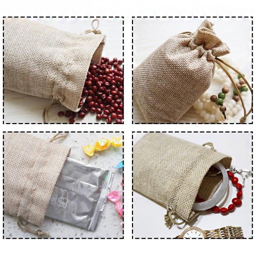 WORECZKI LNIANE ZE SZNURKIEM WORKI JUTOWE MAŁE 9x12, 10 sztuk