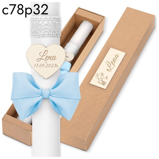- ozdobne kartonowe pudełko z imieniem dziecka.