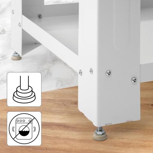 Wykonana z wysokiej jakości metalu podstawa zapewnia wyjątkową stabilność i wytrzymałość. Konstrukcja redukuje wibracje, co jest szczególnie przydatne podczas wirowania pralki, minimalizując hałas i ruchy urządzenia.