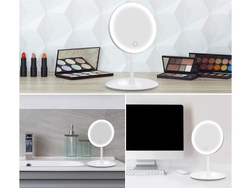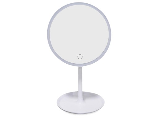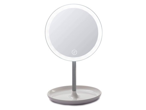 Wokół lustra zamontowane zostało oświetlenie ledowe, dzięki czemu możemy dokładnie zobaczyć swoje odbicie. Oświetlenie zapala się za pomocą przycisku umiejscowionego na lusterku. Posiada trzy stopnie światła barwa zimna, ciepła i neutralna. Podstawa lusterka jest lekko wgłębiona dzięki temu możemy ustawić tam swoje kosmetyki.