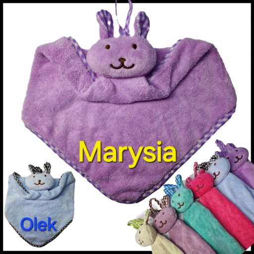 Ręcznik do przedszkola o wymiarach 25x25 cm, idealny do codziennego użytku przez najmłodszych. Jego główną ozdobą jest głowa królika, która dodaje mu uroku i przyciąga wzrok dzieci. Dodatkowo, ręcznik posiada zawieszkę, co ułatwia jego zawieszenie na haczyku lub wieszaku.