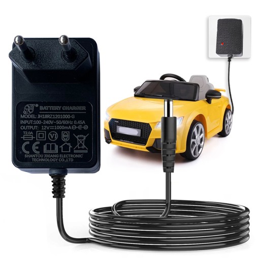 zasilacz 12 V 1 A DC, odpowiedni do pojazdów elektrycznych dla dzieci, kabel do ładowania samochodu dla dzieci, z wtyczką EU, w kolorze czarnym, jako zasilacz.