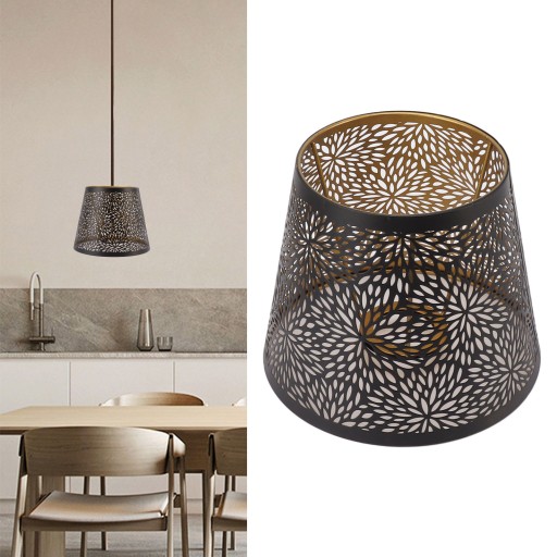 2. Żelazny materiał: wykonany z najwyższej jakości żelaza, ten abażur ma wykwintne wzory powstałe dzięki doskonałemu grawerowaniu. Jest pokryty odporną na erozję warstwą farby, która zapewnia doskonałe odprowadzanie ciepła i dużą przepuszczalność światła.