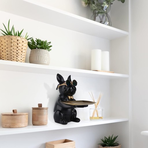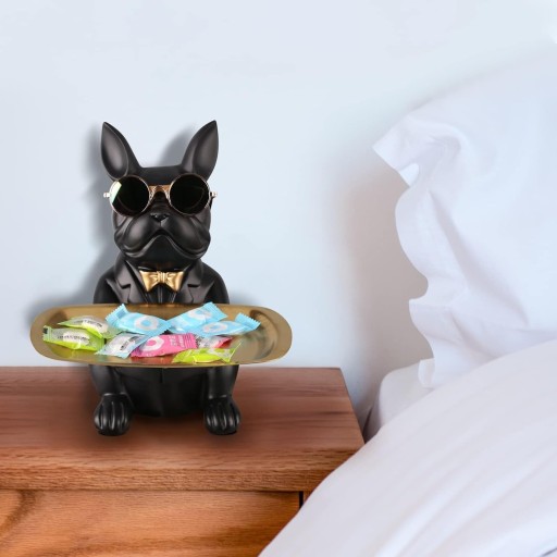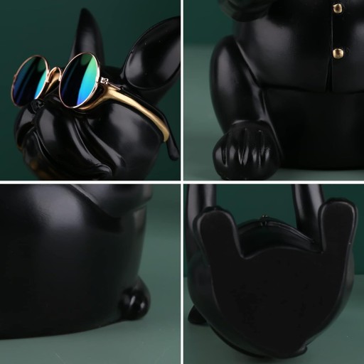 BULDOG FRANCUSKI RZEŹBA FIGURKA SKARBONKA ZE ZŁOTĄ TACĄ