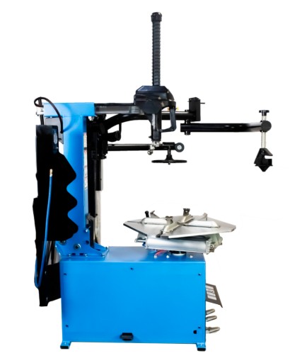 Przedstawiony model montażownicy charakteryzuje pneumatycznie sterowane oraz blokowane uchylne ramię główne, umożliwiające szybką i bezpieczną wymianę opon.