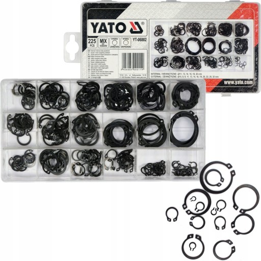 КОЛЬЦА YATO НАРУЖНЫЕ И ВНУТРЕННИЕ 225 шт., РАЗМЕРЫ РАЗМЕРОВ YT-06882