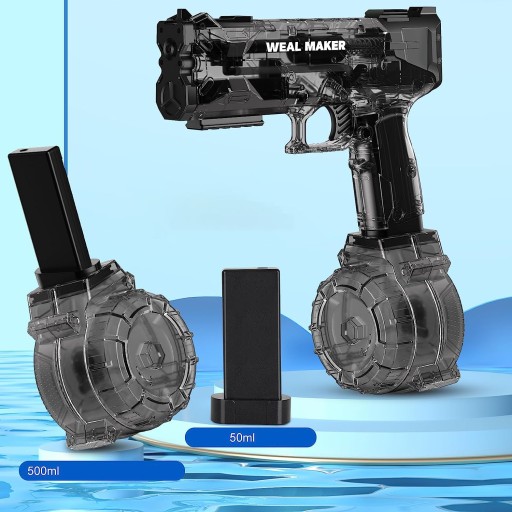 - Przyjmuje zbiornik na wodę o dużej pojemności 500 ml, umożliwiający jednoczesne przechowywanie dużej ilości wody i jest wyposażony w zapasowy magazynek o pojemności 50 ml, który jest wygodniejszy do przenoszenia. Niezależnie od tego, czy jest to długotrwałe strzelanie, czy długa sesja grania, będziesz cieszyć się nieprzerwaną mocą wody.