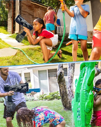 - Jest to elektryczny pistolet na wodę o dużej mocy i dużej wydajności wody. Napędzany jest ulepszonym silnikiem elektrycznym, który zapewnia doskonałą moc wtrysku wody i doskonały zasięg strzelania do 26 stóp, czyli znacznie większy niż rynek innych podobnych pistoletów na wodę. Niezależnie od tego, czy strzelasz z dużej odległości, czy z bliskiej odległości, ten pistolet na wodę może przynieść Ci niespodzianki wykraczające poza wyobraźnię.