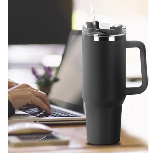 prosty, nowoczesny kubek jest wyposażony w uchwyt, dzięki któremu można szybko chwycić ten kubek samochodowy i rozpocząć pracę. Ma pojemność 1180 ml na wodę i napoje.