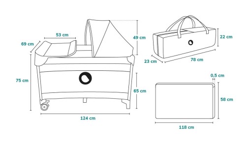 Łatwe składanie do kompaktowych rozmiarów pozwala na swobodny transport i przechowywanie łóżeczka.