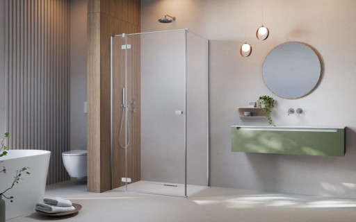 - Zawiasy zostały zlicowane z taflą szkła – jednolita powierzchnia ułatwiająca czyszczenie kabiny