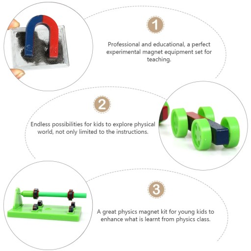 Wykonane z materiałów, bezpieczne i trwałe w użyciu, przyjazne dla dzieci, przyjazne dla skóry, o długiej żywotności. Ładne połączenie magnesu na sprzęt eksperymentalny, z łatwością spełnia różne potrzeby. Wystarczająco łatwe dla młodszych uczniów i dzieci do wcześniejszego odkrywania i zainteresowania się fizyką.