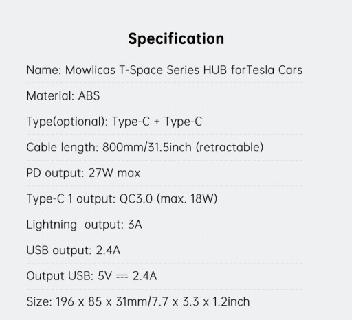 Для быстрого зарядного устройства Tesla Model3/Y 27 Вт, док-станции USB Type-C