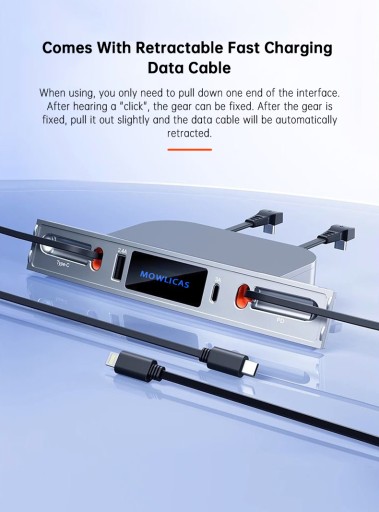 【Wysoka kompatybilność i szybkie ładowanie】 Ta stacja dokująca Mowlicas USB Hub jest wyposażona w wieloportowe, 2 zwijane kable do błyskawicy PD 27 W i QC 18 W typu C obsługujące szybkie ładowanie oraz 2 porty ładowania do USB i typu C, odpowiednie dla wszystkich smartfonów i tabletów , słuchawki douszne Bluetooth, inteligentne zegarki, kamery cyfrowe i inne urządzenia.