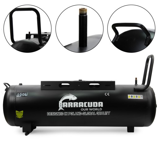 Wzmocniona konstrukcja 100 litrowej butli na sprężone powietrze - dodatkowo zabezpieczona powłoką antykorozyjną.
