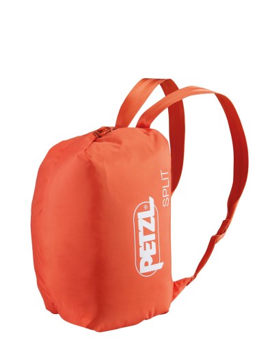 Torba na linę z płachtą Petzl Split - red/orange to wyjątkowy model, który łączy w sobie konstrukcję worka z szelkami, umożliwiający wygodne przenoszenie liny. Dzięki swojej pojemności może pomieścić nawet do 120 metrów liny.