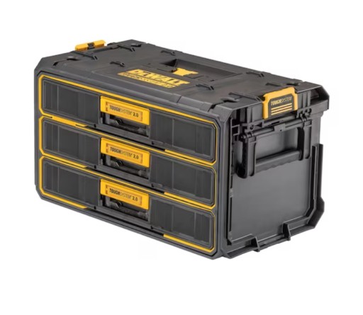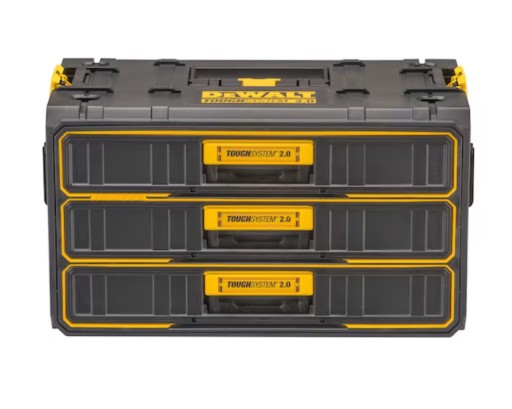 Trzy płytkie szuflady znajdujące się w skrzyni DEWALT® TOUGHSYSTEM 2.0 zapewniają natychmiastowy dostęp do narzędzi bez konieczności wyjmowania dodatkowych modułów. Niezwykle wytrzymałe szuflady płynnie otwierają się i zamykają dzięki zastosowanym łożyskom kulkowym, co gwarantuje najwyższą niezawodność. Dzięki automatycznym zatrzaskom skrzynię można łatwo łączyć z innymi jednostkami i skrzyniami narzędziowymi serii TOUGHSYSTEM.