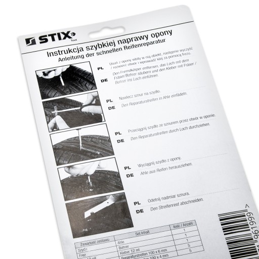 ZESTAW DO SZYBKIEJ NAPRAWY OPON SAMOCHODOWYCH W BLISTRZE - STIX