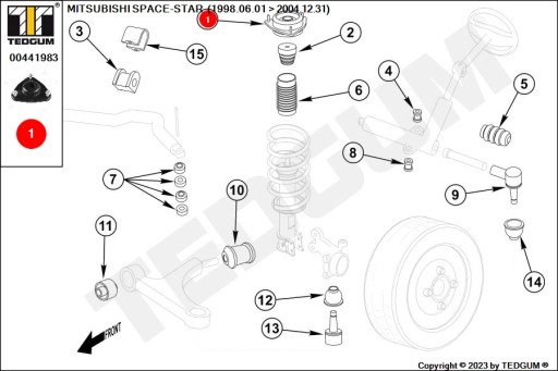 MITSUBISHI CARISMA, COLT, LANCER, SPACE-STAR - MOCOWANIE AMORTYZATORA PRZEDNIEGO LEWE / PRAWE