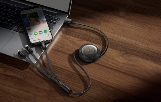 Regulowana długość kabla (50 / 76 / 98 / 110 cm) umożliwia dostosowanie go do każdej sytuacji – od wygodnego ładowania z bliska po korzystanie z urządzenia w odległości. Dzięki temu możesz swobodnie używać swoich sprzętów! Ponadto wysokiej jakości mechanizm zwijania i rozwijania przewodu zapewnia płynność i wygodę w użytkowaniu.
