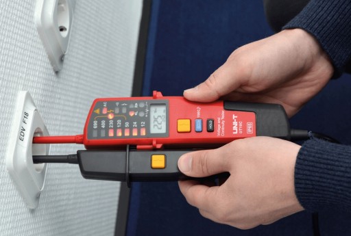 - Wskaźnik LED pomiaru napięcia: