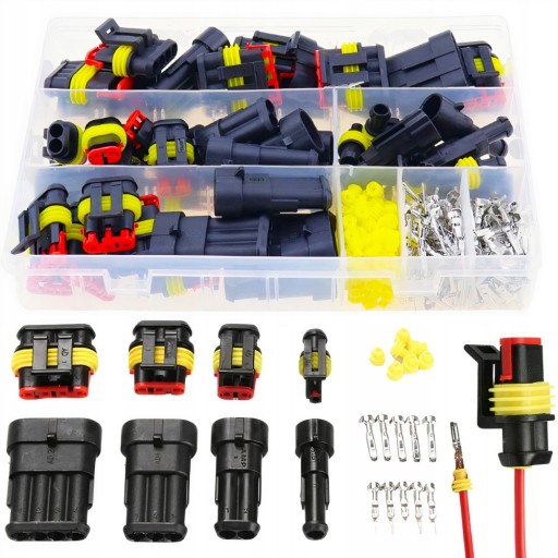 W zestawie znajduje się : 10 złączy męskich oraz żeńskich, 20 pinów męskich oraz żeńskich, 40 wodoodpornych silikonowych wtyczek