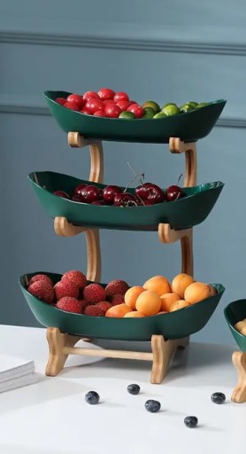 STOJAK NA OWOCE PIĘTROWY DUŻY PATERA PIĘTROWA TACA NACZYNIE ORGANIZER KUCHENNY 3 MISKI NA WARZYWA OWOCE KOLOR ZIELONY
