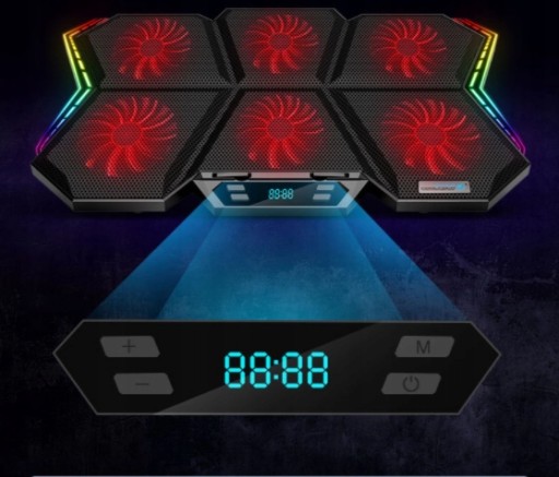 Podkładka wyposażona jest wyświetlacz LED oraz przyciski dzięki którym będziesz mógł sterować mocą chłodzenia wiatraków Twojego laptopa niezależnie czy będziesz grał w wymagające gry lub gdy będziesz serfował po internecie.