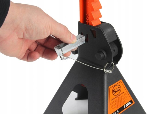 Specjalna, dodatkowa blokada w postaci bolca (pinu) zabezpiecza mechanizm zapadkowy przed niezamierzonym opuszczeniem kolumny podpory. Pin zaopatrzony jest w stalową linkę przymocowaną do korpusu kobyłki, co chroni go przed zgubieniem.
