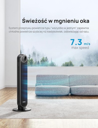 Dreo's all-in-one airflow system łączy się z supercharged electric motor to deliver fast, vibrant cooling. Ten kompaktowy 36-calowy wentylator ożywia każdy cal powietrza w Twojej przestrzeni życiowej z prędkością do 7,3 m/s.
