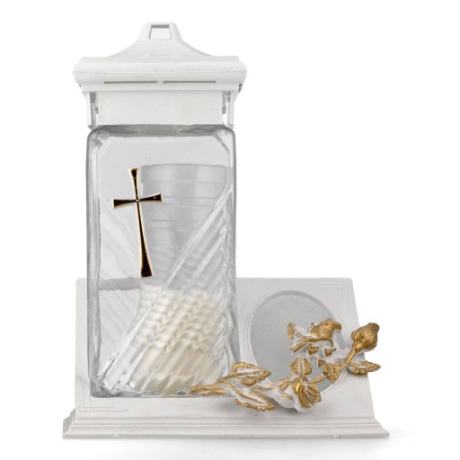 Znicz ZC-222 z Tabliczką, Różą i Krzyżem - Biała Elegancja i Złoty Blask