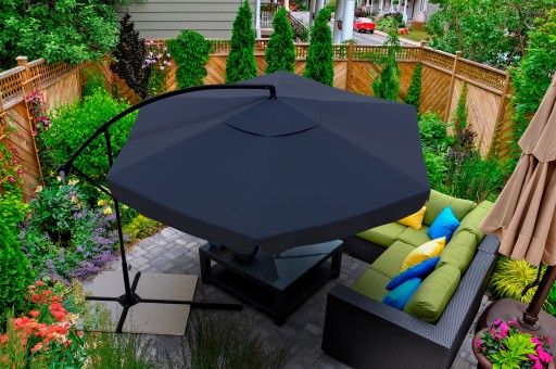 ✅Odpowiednia ochrona i zacienione miejsce to gwarancja udanego posiłku na zewnątrz. Poszycie parasola umieszczone na bocznym wysięgniku stworzy przyjemne i bardzo duże miejsce z ograniczoną ilością promieni słonecznych. Dzięki mechanizmowi zginania możesz dowolnie ustawić poszycie pod kątem świecącego słońca, a boczny wysięgnik pozwoli na wykorzystanie zacienionej przestrzeni w 100%.