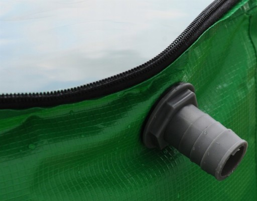 Wodę możesz następnie wybrać od góry po odpięciu zamka błyskawicznego lub podłączyć zwykły wąż ogrodowy.