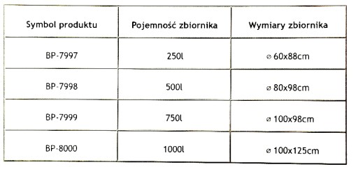 - Pojemność: 1000 L