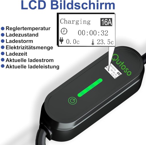 Зарядное устройство для мобильных электромобилей, тип 2, 6 м, 230 В, 3,6 кВт, ЖК-дисплей, регулируемый, 8 А/16 А Qutoso