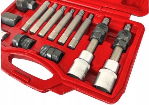 Profesjonalny zestaw kluczy do montażu i demontażu alternatorów typ Bosch i Magneti Marelli. Dostosowany do samochodów marek: Audi, BMW, Fiat, Ford, Mercedes, Opel, Renault, Peugeot, Seat, Skoda, Volvo, VW i innych. Klucze umożliwiają jednoczesne odkręcanie śruby mocującej koło pasowe (za pomocą odpowiedniego bitu) oraz przytrzymywanie koła ze sprzęgłem (za pomocą specjalistycznej nasadki).